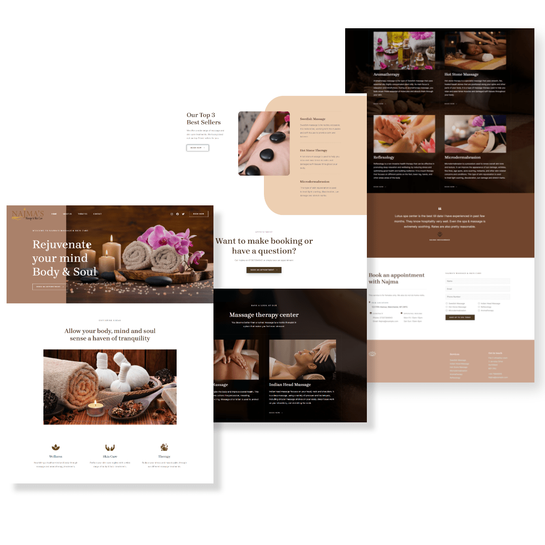 - Services and Treatments: We developed a comprehensive section to showcase Najma’s Spa’s range of services and treatments. Each service was presented with a detailed description, outlining the benefits and techniques involved. This allowed potential clients to easily identify the treatments that suited their needs, creating a seamless browsing experience.